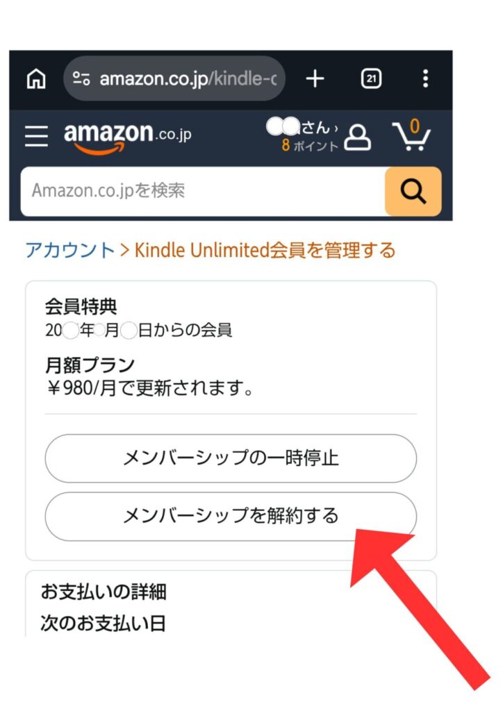 最後に、メンバーシップを解約するをタップすれば完了です。